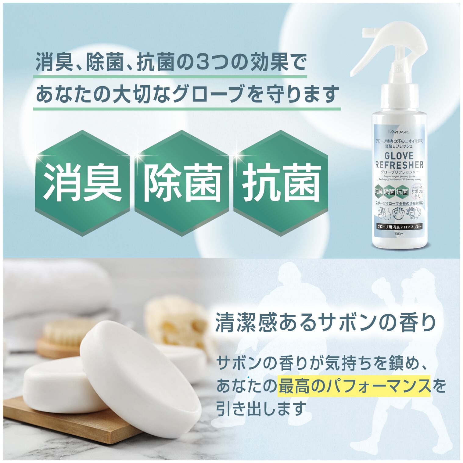 グローブ用 消臭スプレー (99% 消臭 除菌 抗菌) グローブリフレッシャー 【野球 ボクシング ゴールキーパー 剣道】 サボンの香り 100ml 日本製